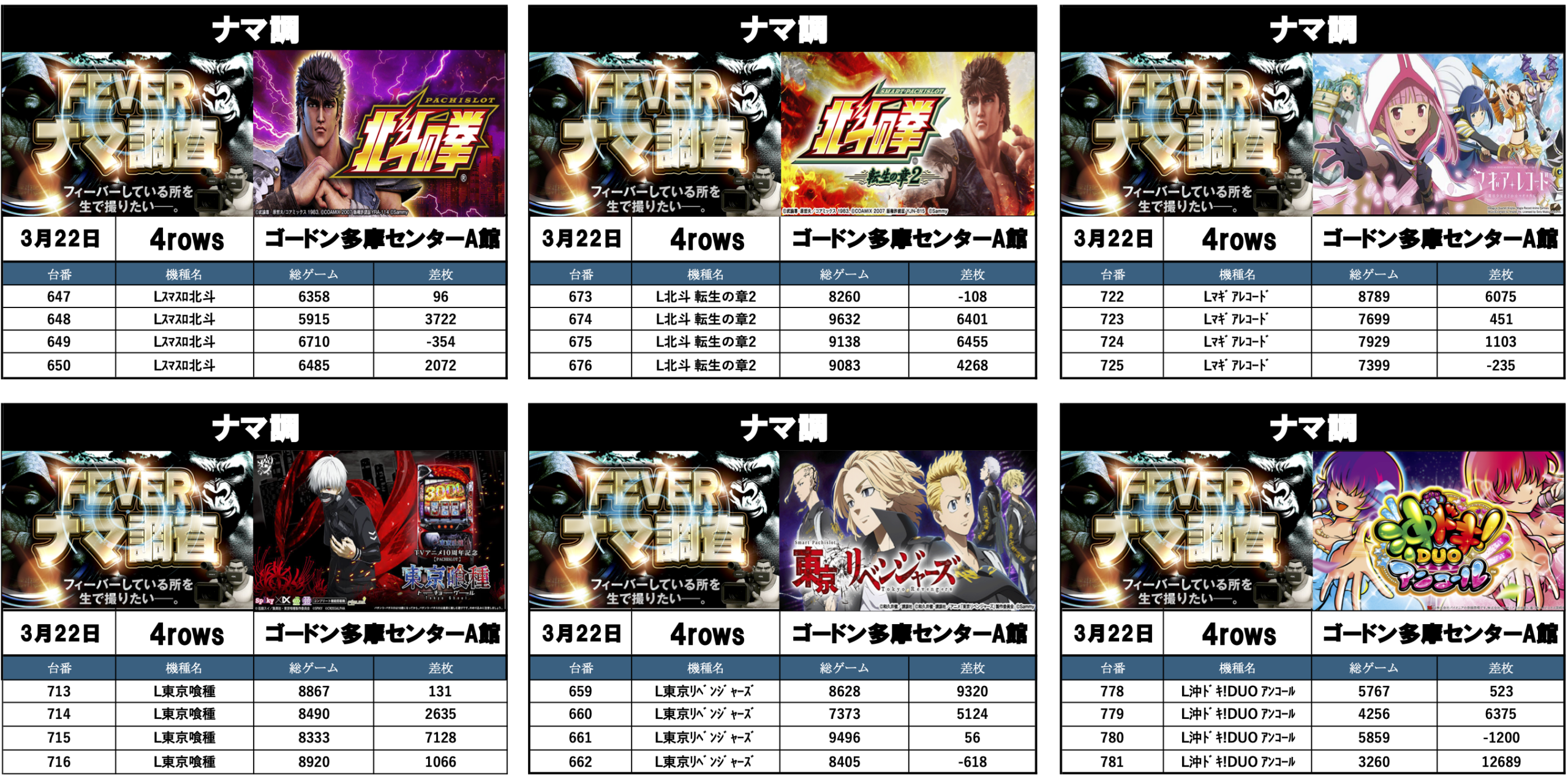 2026年3月22日ゴードン多摩センターA館 出玉結果|ナマ調(PR)