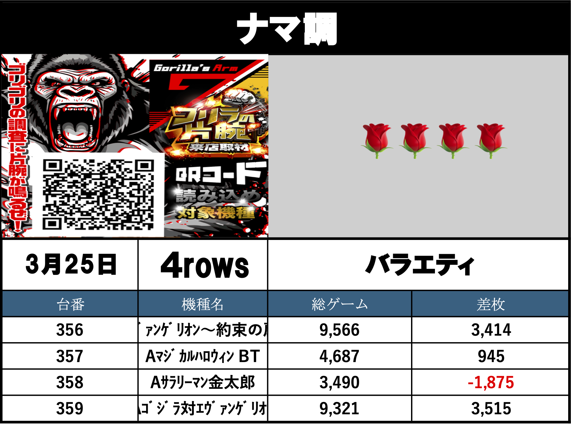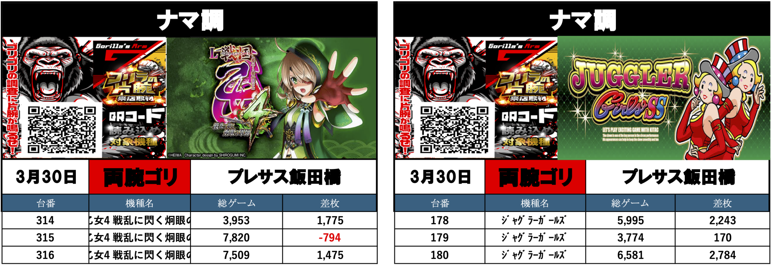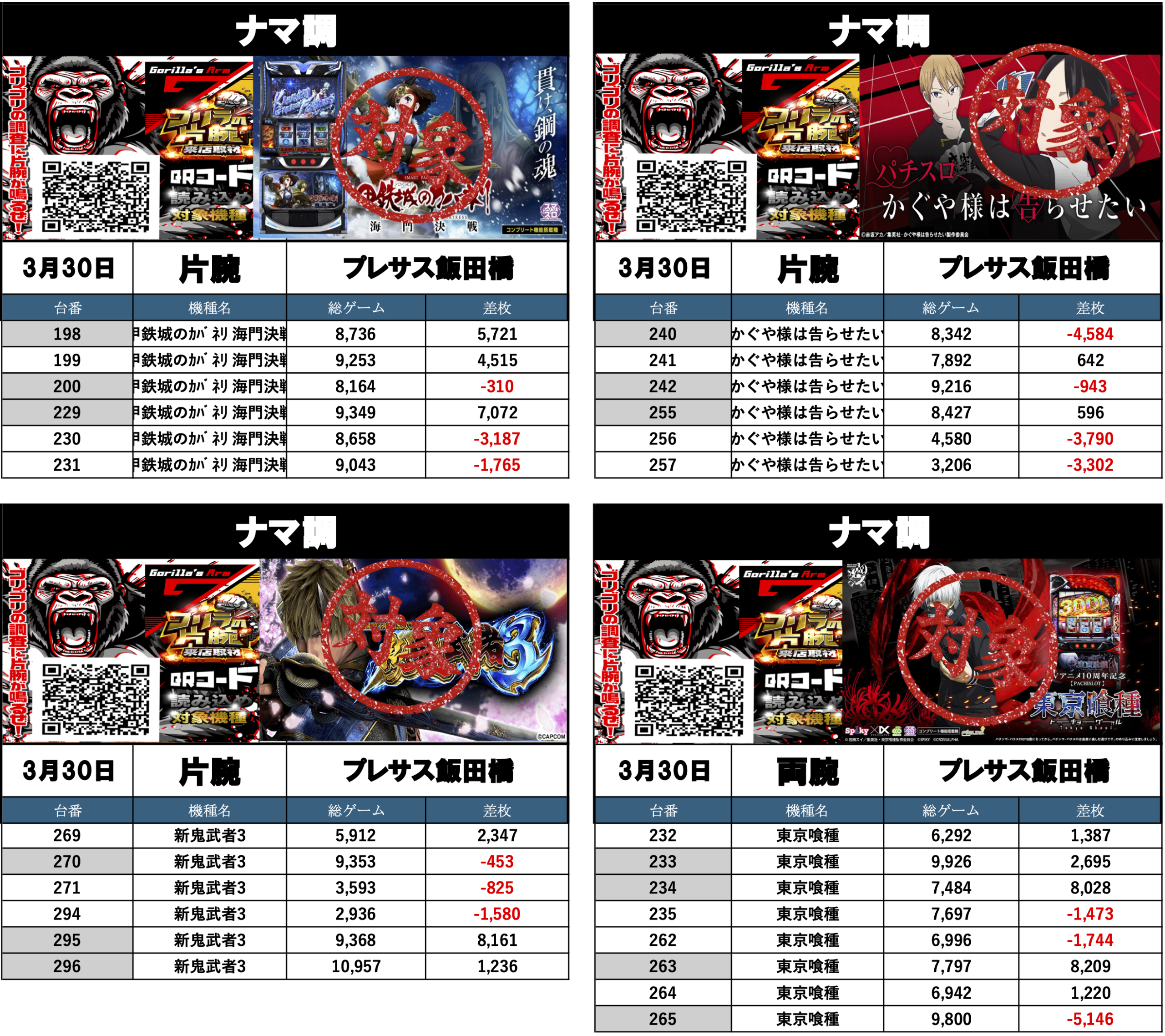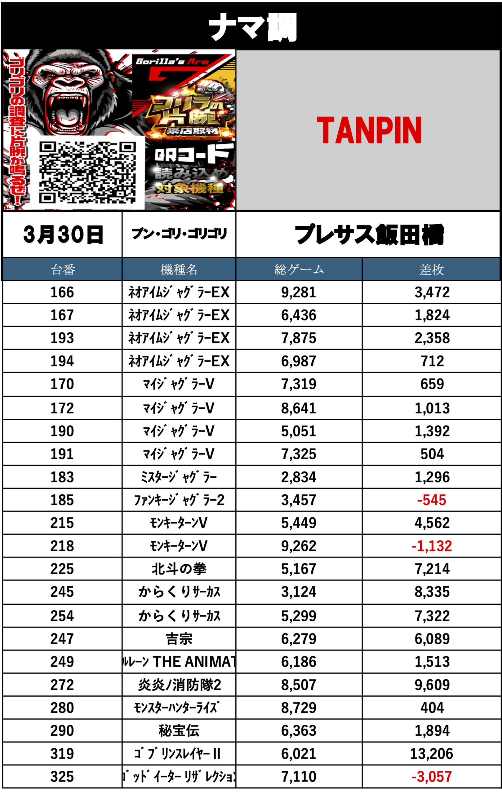 3月30日の総差枚+60,833枚 1台平均298枚でした!