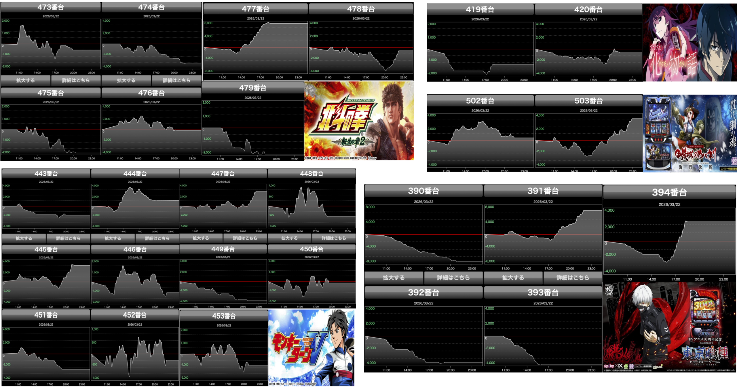 ※本レポートは、ホールで公開されているデータを「ナマ調」が独自集計し、 編集したものになります。 数値はあくまでも独自調査のものになるために内容を保証するものではありません。 次回の立ち回り参考資料としてご活用ください。